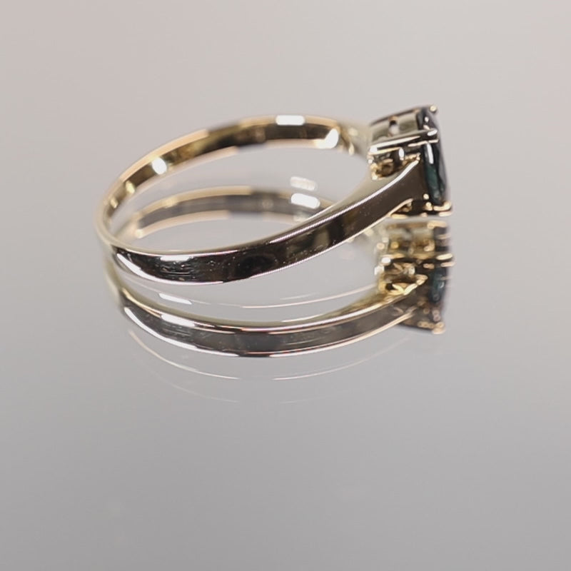 Finished in polished 14Ct gold with a smooth interior for comfortable daily use. This ring is preloved and has been professionally restored; clean gently with warm soapy water and a soft brush, then dry with a lint-free cloth, and avoid harsh chemicals to protect the sapphire and the gold.