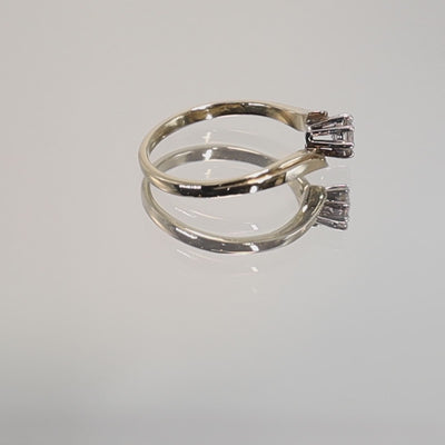 The crossover shoulder gives interest while keeping the ring easy to wear with other pieces. The solitaire setting keeps the look focused and versatile.