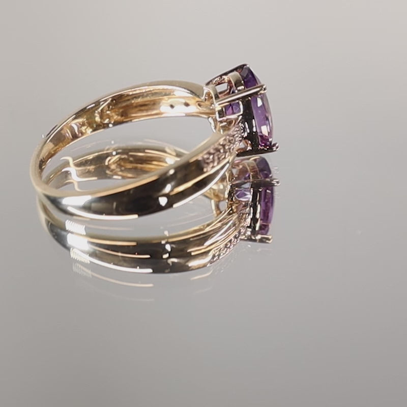 9Ct Gold Amethyst Single Stone Ring With Diamond Set Shank
