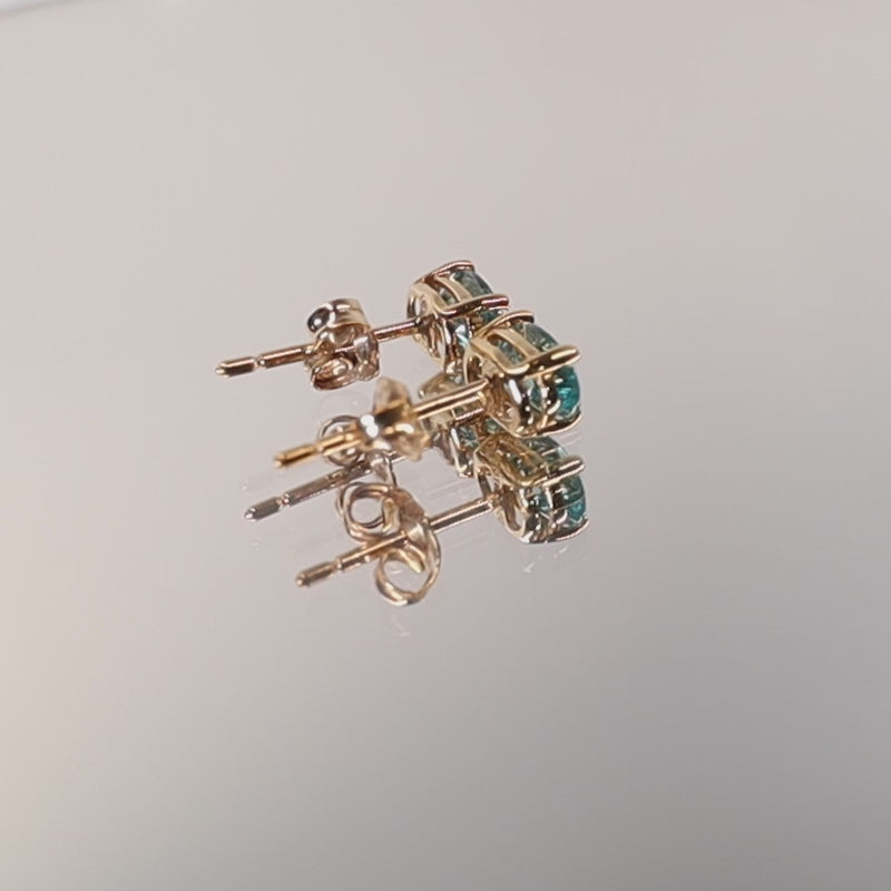 These earrings are preloved and have been professionally restored, then finished with a clean polish. As apatite can be more delicate than some gemstones, store separately, avoid knocks and harsh chemicals, and remove before swimming, cleaning, or sport. Please note there are no hallmarks or markings present; the piece is described as 9ct gold based on the provided information. Total weight: 0.8g.