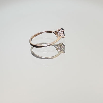 The low, tapered silhouette sits comfortably and layers neatly alongside other rings. The green centre stone gives colour without dominating an everyday jewellery wardrobe.