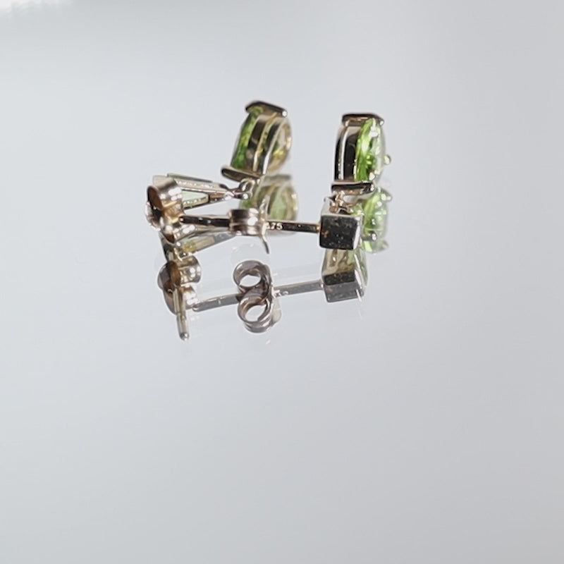 - Green peridot drop stones set to a short drop design