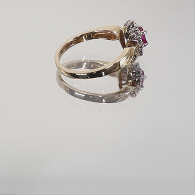 9Ct Gold Ruby & Diamond Halo Ring